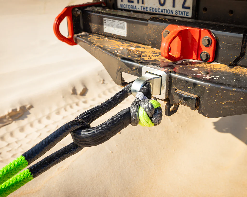 Once fitted with a soft shackle, you can then attach a winch, winch extension rope, kinetic recovery strap, snatch strap, etc.